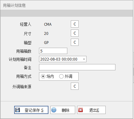 增加用箱计划界面: